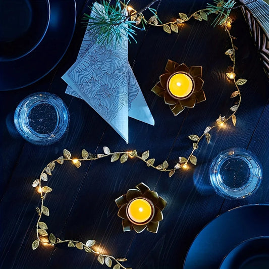 1PC 2M 20LED Golden Tiny Leaves Fairy Light Battery Powerd Led Copper Wire String Lights For Wedding Home Party DIY Xmas Decor
