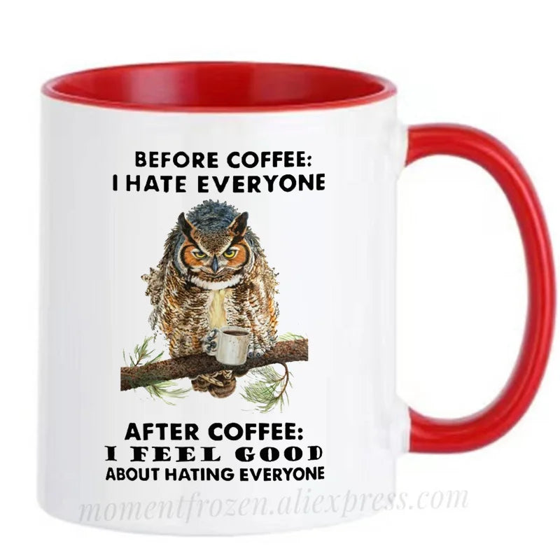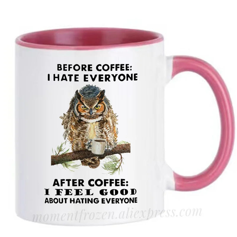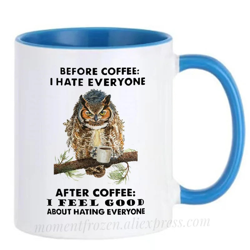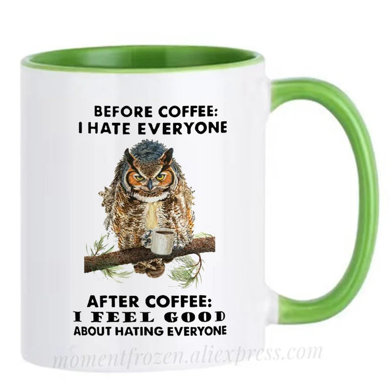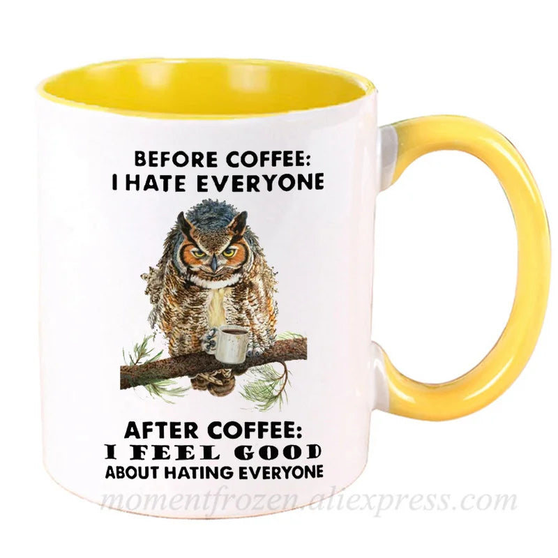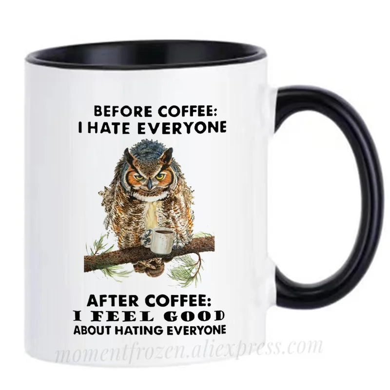 Funny Owl Cups Office Coworker Coffee Mugs Friends Gift Ceramic Beer Drinkware Nature Animal Lover Tea Caffeine Cocoa Coffeeware